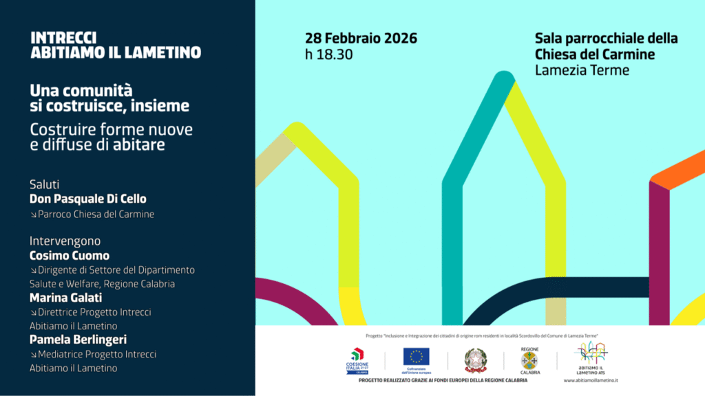 Prosegue il percorso di “Intrecci – Abitiamo il Lametino” all’interno del progetto “Inclusione e integrazione dei cittadini di origine rom residenti in località Scordovillo nel Comune di Lamezia Terme”, con i suoi incontri itineranti di sensibilizzazione per rimettere al centro del confronto pubblico cittadino il tema dell’abitare come esperienza comunitaria.
