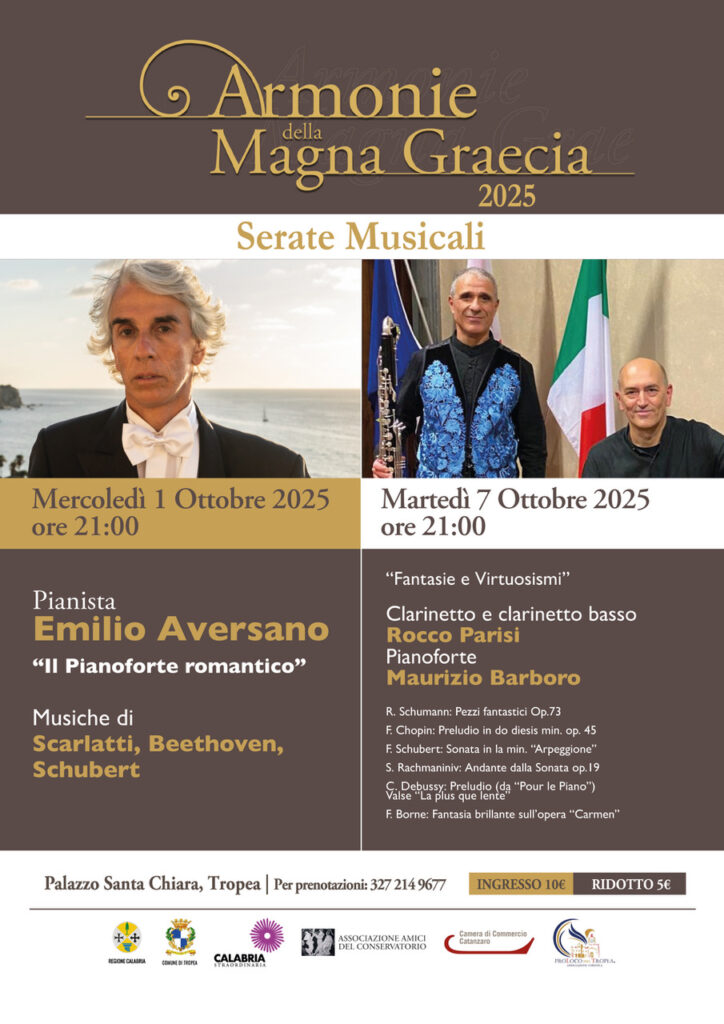 Armonie della Magna Graecia 2025. Grandi interpreti internazionali 1 e 7 ottobre a Tropea