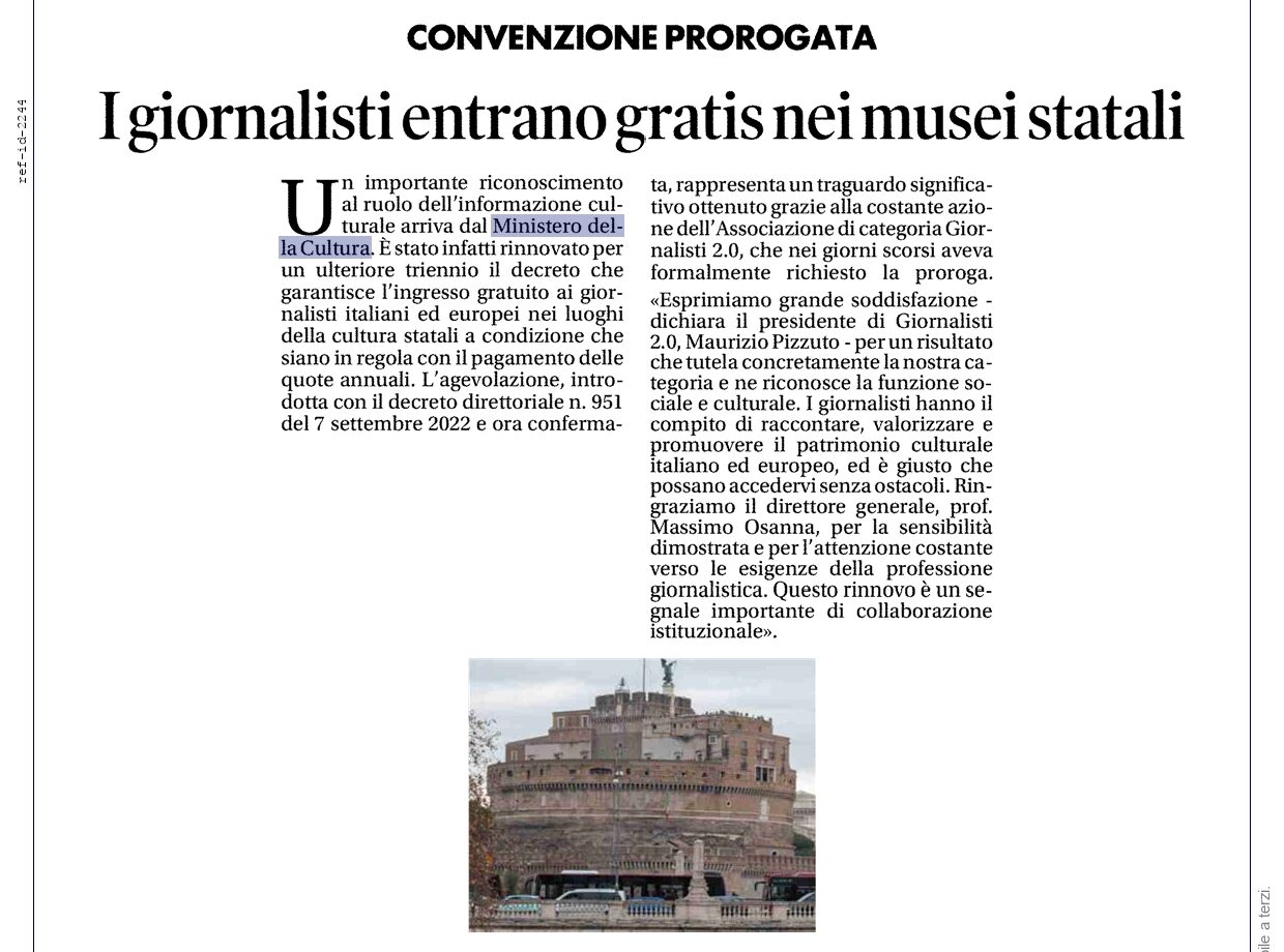 Cronaca Complimenti al Presidente Maurizio Pizzuto un’ azione meritevole dell’Associazione di Categoria Giornalisti 2.0 per l’importanza della diffusione della Cultura con