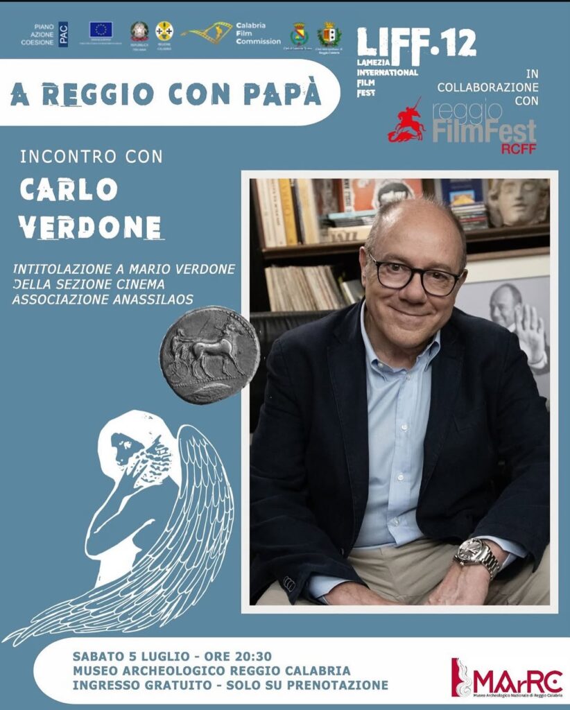 La serata si concluderà con l’intervento del Presidente della Calabria Film Commission, Anton Giulio Grande, e con la consegna del premio alla carriera a Carlo Verdone, a cura dell’associazione culturale Anassilaos di Reggio Calabria.