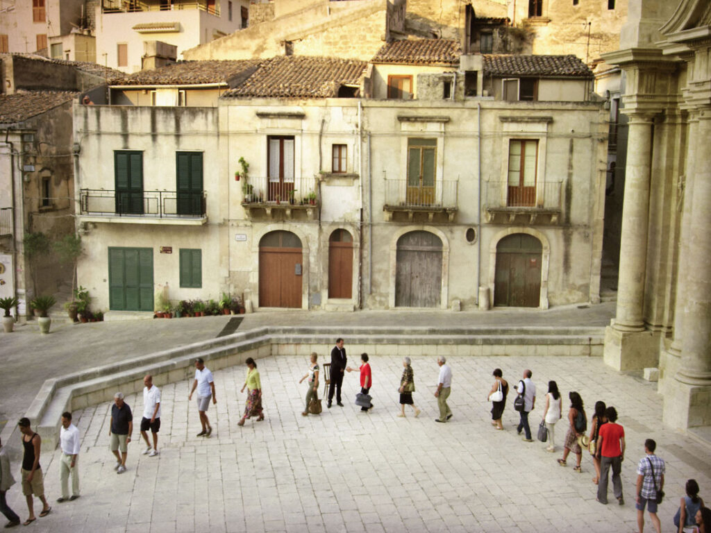 situazioni che esplorano la performatività come qualità essenziale dei linguaggi dell’arte contemporanea». Nel workshop con Adrian Paci (settembre 2025), un gruppo di undici studenti dell’ABARC ha lavorato sul medium cinematografico, intrecciando video, fotografia e installazione ambientale. «Adrian è un artista che esplora la condizione umana in transito, soffermandosi su temi come migrazione, identità e precarietà, attraverso un linguaggio che unisce esperienza personale, finzione e immaginazione – sottolinea il direttore Sacchetti – Nei suoi lavori alterna installazione, video, fotografia, pittura e performance per indagare le dinamiche sociali, politiche e culturali del nostro tempo». Il workshop ha portato alla riedizione dell’opera The Encounter (2011), riallestita sulla spiaggia di Favazzina, dove l’artista ha incontrato gli studenti dell’ABARC stringendo loro la mano in modo simbolico. Un gesto semplice ma fortemente metaforico, ripetuto fino a diventare rituale. Come in una processione laica, la lunga fila di partecipanti ha ridisegnato lo spazio naturale della “Costa Viola”, trasformando la stretta di mano in un segno di unione e tensione fra performer e contesto culturale, naturale e urbano. La documentazione audiovisiva dell’azione è stata curata dalla prof.ssa Rosita Commisso con il gruppo della Scuola di Cinema, che ha realizzato una video-performance come esito finale del progetto.