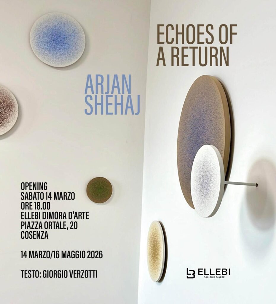 La Galleria d’Arte Ellebi presenta sabato 14 marzo alle ore 18.00, la mostra personale di Arjan Shehaj dal titolo “Echoes of a Return”, un progetto espositivo che segna il ritorno dell’artista a Cosenza a distanza di dieci anni dalla sua partecipazione alle residenze BoCs Art – Ricognizioni sui linguaggi del contemporaneo, curate da Alberto Dambruoso.Questo ritorno segna una nuova fase del percorso dell’artista. Come sottolinea lo stesso Shehaj, l’esperienza maturata in questi anni ha portato la sua pittura verso una nuova fase di consapevolezza: un linguaggio più organizzato nelle idee, più maturo nelle intenzioni e al tempo stesso più raffinato sul piano pittorico. La sua gestualità si fa oggi più fluida, sicura e consapevole, segno di una ricerca che ha progressivamente affinato i propri strumenti espressivi.L’arte di Arjan Shehaj si concentra sull’elemento geometrico del linguaggio pittorico, attraverso il quale l’artista cerca di avvicinarsi a una dimensione rarefatta e quasi assoluta dell’immagine.