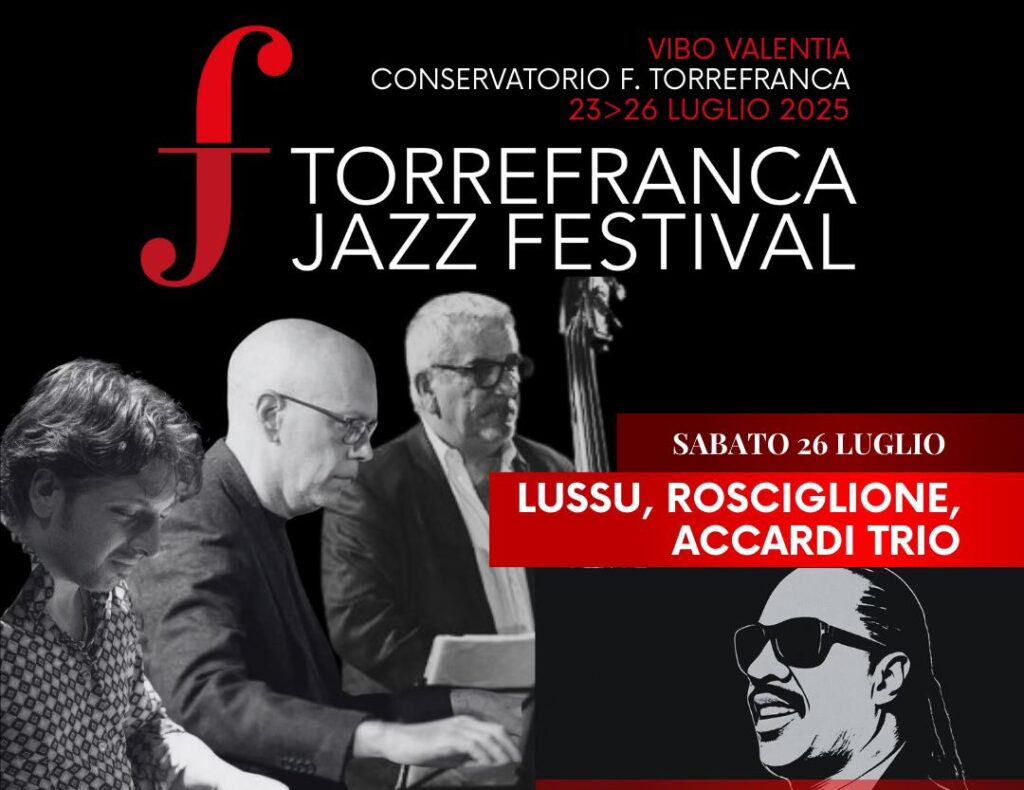 A seguire, alle ore 22:00, si esibirà il Lussu, Rosciglione, Accardi Trio, formato da tre musicisti di altissimo profilo: Pietro Lussu al pianoforte, noto per la sua eleganza esecutiva e capacità creativa, Dario Rosciglione al contrabbasso, che con il suo suono profondo e raffinato sostiene e impreziosisce il trio, e Fabio Accardi alla batteria, musicista di lunga esperienza e sensibilità, capace di dialogare con i compagni di palco con grande equilibrio e dinamismo. Il loro concerto rappresenta un’occasione per ascoltare un jazz intimo e sofisticato, frutto di un’interazione musicale matura e spontanea.