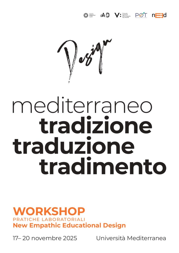 Il dAeD, dell’Università Mediterranea di Reggio Calabria, ospita il workshop “Design Mediterraneo – Tradizione, Traduzione, Tradimento”, promosso nell’ambito del progetto nazionale POT–NEED – New Empathic Educational Design, coordinato da Maria Dolores Morelli, responsabile nazionale del progetto dell’Università della Campania “Luigi Vanvitelli” e Francesco Armato referente di sede per l’Università Mediterranea di Reggio Calabria.