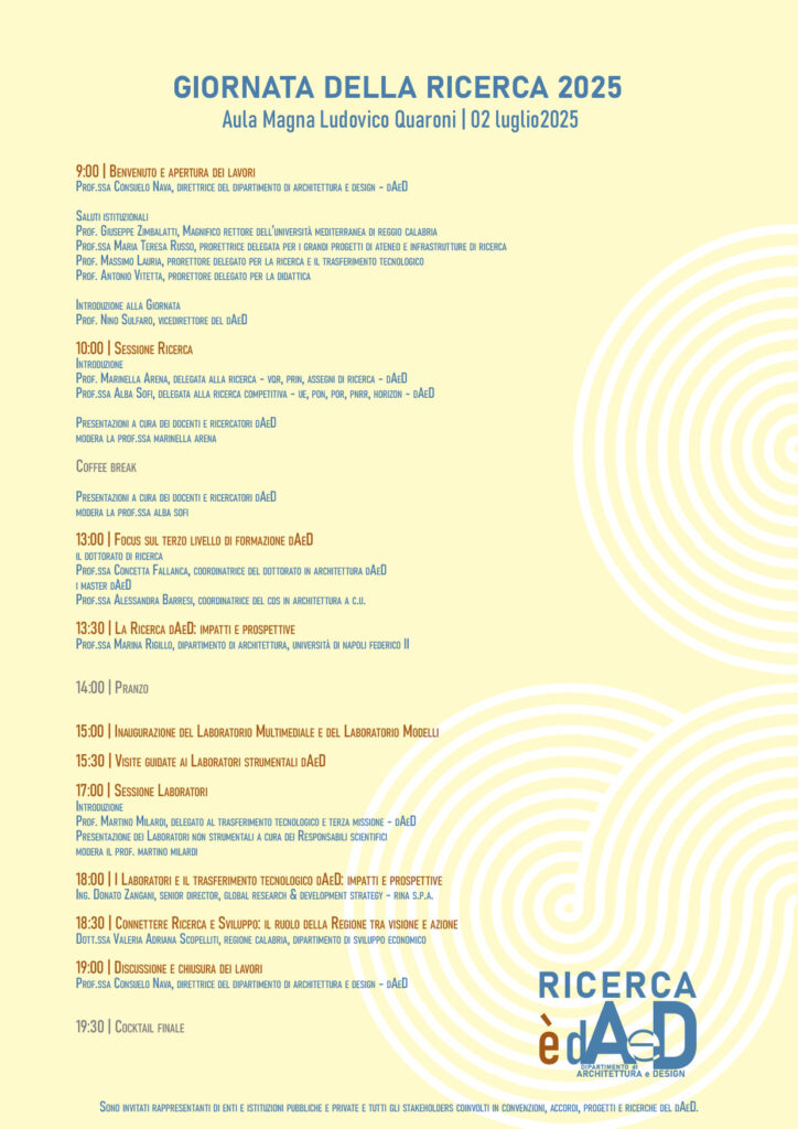 La GIORNATA DELLA RICERCA dAeD 2025, si terrà mercoledì 2 luglio 2025, Aula Magna “L. Quaroni” dalle ore 9:30 alle 19.