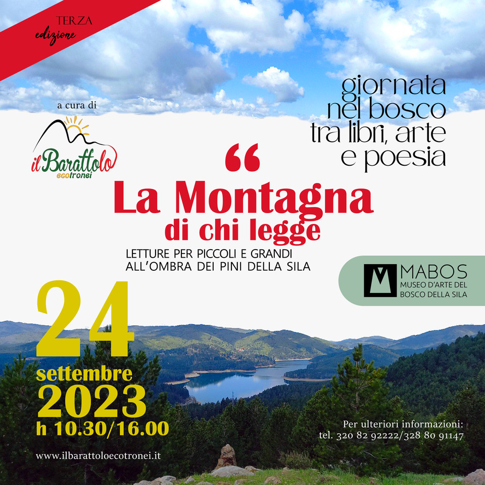 La rassegna quest’anno si terrà – al termine della stagione estiva – in un’altra zona della Sila piccola, il Mabos, il Museo d’Arte del Bosco della Sila, dove sarà ospitata per una giornata all’insegna dei libri, dell’arte e della poesia. L’appuntamento è previsto per il 24 settembre alle ore 10.30 e si articolerà in vari momenti. Ospite d’onore della giornata sarà l’autrice Fioly Bocca, che presenterà il suo libro Quando la montagna era nostra (Garzanti, 2020).