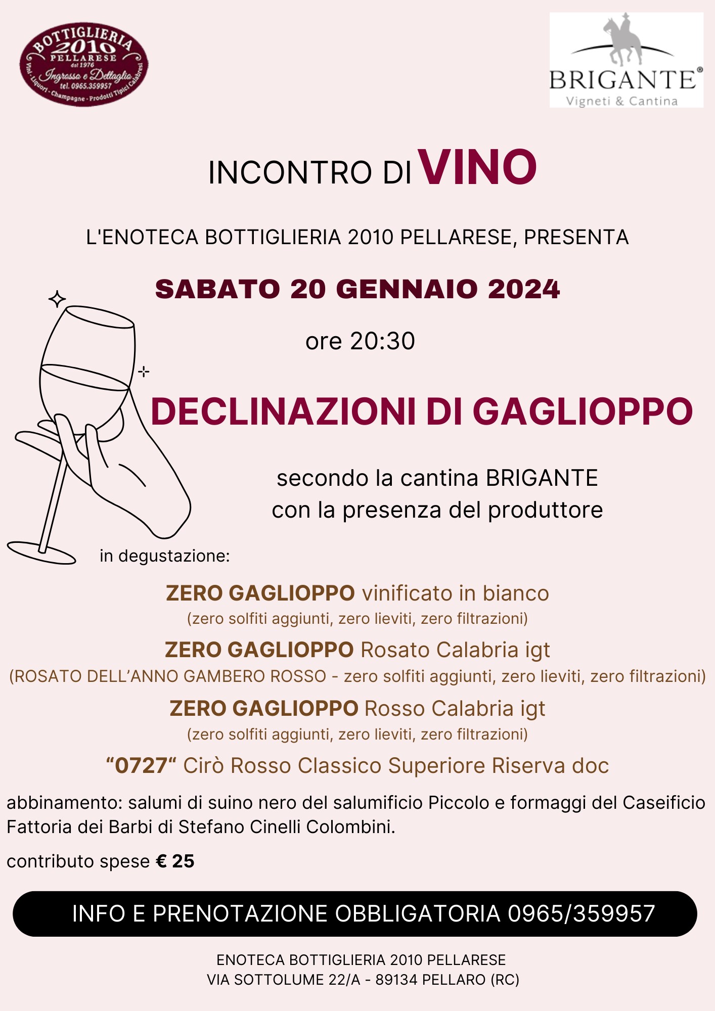 INCONTRO DI VINO, SECONDO LA CANTINA BRIGANTE