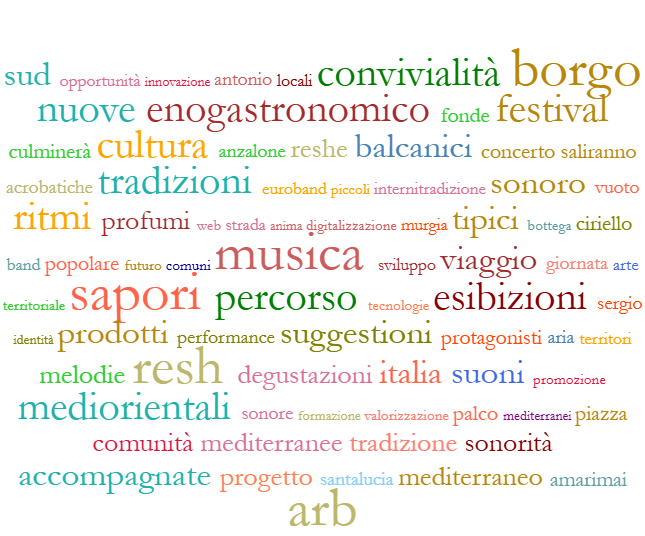 Abbiamo fatto l’analisi delle Nuvole su diversi arrticoli di stampa degli ultimi 6 mesi che promuovono il territorio con eventi vari con una focalizzazione sull’enogastronimia ( v. Nuova n.1 ), ma nessuno pubblicamente si cimenta ad attuare sistematicamente per esempio con politche regionali sulle Minoranze Linguistiche, importantissimo condividere una nuova visione su parole-azioni ( v. Nuvola 2)