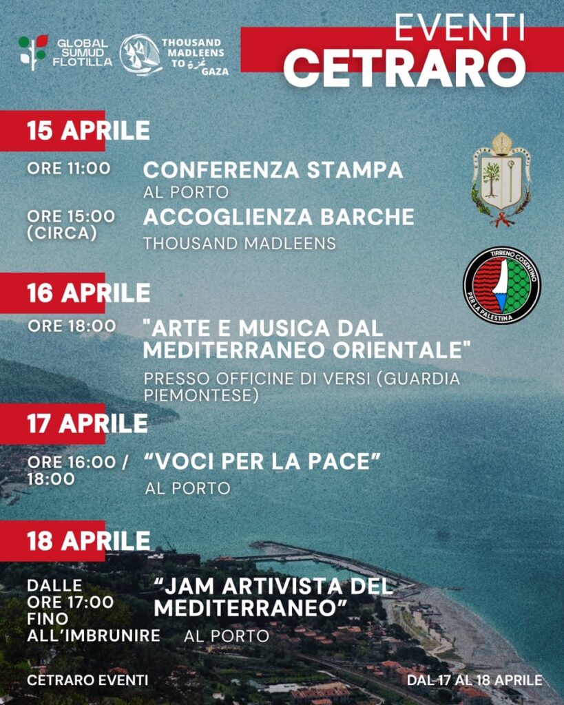 Sabato 18 aprile, il porto di Cetraro diventerà il baricentro di un incontro senza precedenti tra storia, identità e solidarietà internazionale. In occasione dell’attracco della Flotilla per Gaza, associazioni ed enti locali hanno promosso un convegno e un sit-in per accogliere gli equipaggi impegnati nella missione umanitaria per la fine del massacro in Palestina.