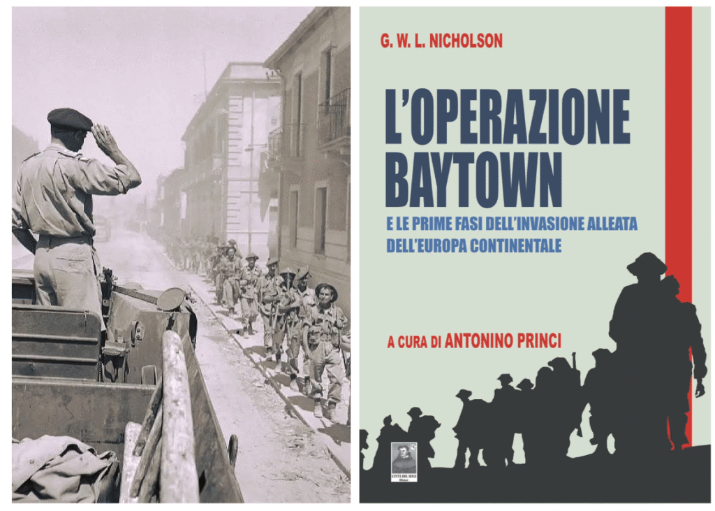 Tra il 1956 e il 1960 vennero dati alle stampe, per i tipi di Edmond Cloutier di Ottawa, tre volumi pubblicati su autorizzazione del Ministro della Difesa canadese che costituiscono una delle più importanti fonti storiografiche per quanto riguarda l’esperienza bellica canadese durante la Seconda guerra mondiale e perciò, indirettamente, la fase riguardante l’invasione dell’Italia. È appena arrivata in libreria (G.W. Nicholson, L’Operazione Baytown, a cura di Antonino Princi, Città del Sole edizioni) un’edizione in cui si riporta la traduzione italiana dei capitoli VII e VIII del II Volume, che riguardano nello specifico l’Operazione Baytown, e cioè lo sbarco delle Forze alleate nell’Europa continentale. Il resoconto prosegue descrivendo l’attraversamento della penisola calabrese fino a Potenza e a parte dell’area foggiana, da un versante, e fino all’area interna salernitana, dall’altro. L’opera è denominata Official History of the Canadian Army in the Second World War, dal titolo The Canadians in Italy 1943-1945, curata dal Colonnello Gerald William Lingen Nicholson, all’epoca Vicedirettore della Sezione storica dello Stato Maggiore Generale delle Forze Armate canadesi, che è anche autore del corposo II volume di cui sopra.