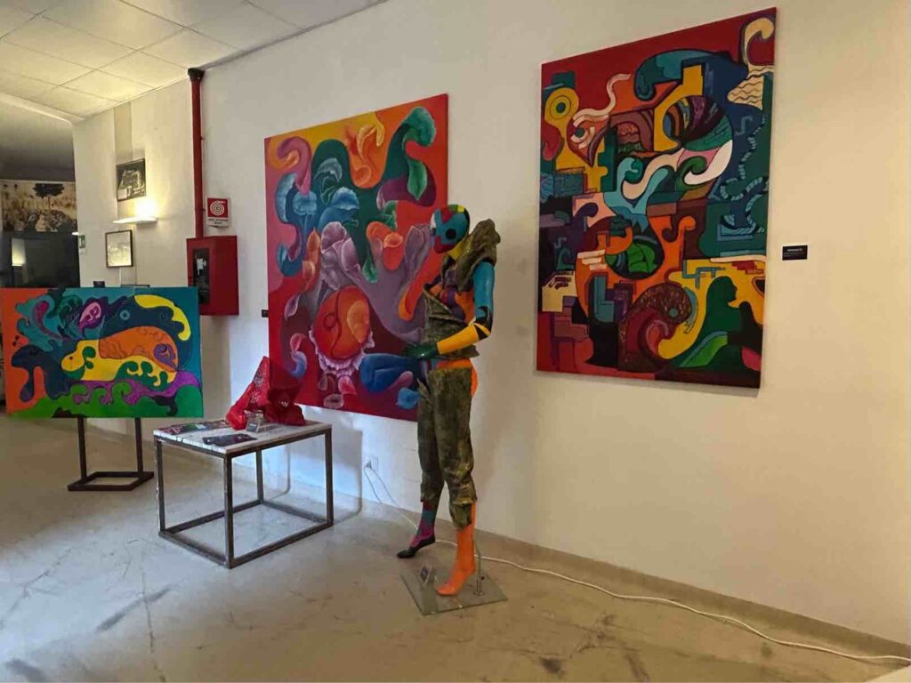 Non si tratta di una semplice esposizione, ma di un percorso immersivo che coinvolge il visitatore sin dall’ingresso, intrecciando memoria storica, ricerca artistica e partecipazione diretta, attraverso cinque mostre che spaziano dalla pittura alla scultura, dalla fotografia alla ceramica dialogando tra loro in un racconto unitario.