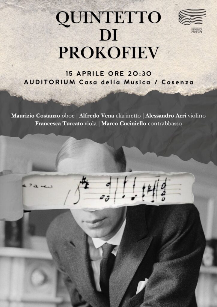 È dedicato al Quintetto di Sergei Prokofiev (1891-1953) il prossimo concerto, il 15 aprile alle 20,30 nell’Aula Magna del Conservatorio, Portapiana, che proprio dal brano op. 39 prende il titolo. Il concerto propone un programma che si svolge con circolarità, iniziando dalle musiche per balletto “Trapèze” e concludendosi con il Quintetto op. 39. Scritte per il particolare ensemble da camera formato da oboe, clarinetto, violino, viola e contrabbasso, le due opere appartengono al periodo in cui Prokofiev soggiornò a Parigi e sono strettamente legate l’una all’altra. Nata per prima, la musica per balletto fu commissionata al compositore russo dalla compagnia dei balletti Romanov e destinata a una coreografia ispirata alla vita del circo. Nello stesso anno 1924, le musiche di “Trapèze” confluirono nel Quintetto op. 39, abbandonando ogni riferimento alla danza teatrale. Incastonate tra i due brani di Prokofiev, il programma del nostro concerto propone i Duettini per viola e contrabbasso dell’italiano Virgilio Mortari (1902-1993) e l’Elegia per viola sola di Igor Stravinsky (1882-1971). Docenti del Conservatorio cosentino, all’oboe suona Maurizio Costanzo, al clarinetto Alfredo Vena, al violino Alessandro Acri, alla viola Francesca Turcato, al contrabbasso Marco Cuciniello. Maurizio Costanzo si è perfezionato all’Accademia Musicale Chigiana, Scuola di Musica di Fiesole, Conservatoire National di Lione; ha suonato con l’Orchestra da camera di Bologna, l’Utrecht Symphony Orchestra, l’Orchestra da Camera Olandese, l’Orchestra del Teatro Petruzzelli, l’Orchestra di Stato Slovacca. Svolge anche attività di critico musicale. Alessandro Acri è vincitore del Soloist and Orchestra Competition di Vienna, l’NMF Audition di Amsterdam, l’European Violin Competition AEMAS di Napoli, l’International Concerto Competition di Brescia; ha suonato con l’Orchestra di Stato del Kazakhstan, la Ruse Symphony Orchestra e la MasterOrchestra di Brescia. Alfredo Vena ha suonato in Argentina, Australia, Austria, Cile, Danimarca, Ecuador, Germania, Inghilterra, Oman, Perù, Russia, Spagna, Singapore, Siria, Svizzera e Tailandia; ha collaborato con le orchestre del Teatro alla Scala di Milano, la Filarmonica della Scala, l’Accademia di Santa Cecilia, il Maggio Musicale Fiorentino, il Teatro la Fenice, l’Opera di Roma, il Teatro San Carlo di Napoli, il Teatro Petruzzelli di Bari, la Filarmonica Toscanini. Francesca Turcato si è esibita in prestigiose sale europee accanto ad artisti di rilievo internazionale; dal 2012 al 2020 è stata violista del pluripremiato Quartetto Indaco. Marco Cuciniello nel 2004 viene scelto da Riccardo Muti per entrare a far parte dell’Orchestra Giovanile “Luigi Cherubini”, ha poi suonato con prestigiose orchestre tra cui la Filarmonica della Scala, l’Accademia di Santa Cecilia.
