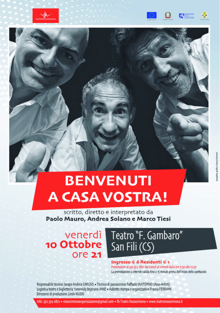 Sei gli spettacoli in programma per la cartellone autunnale che riparte con un una nuova produzione di Rossosimona dal titolo “Benvenuti a casa vostra!” – in scena venerdì 10 ottobre alle 21.